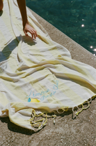 Woven from soft, breathable cotton with a light drape that dries quickly yet feels gentle on sun-warmed skin. Finished with hand-tied fringe and our Limone Beach Club embroidery. Large enough to lounge, light enough to knot as a wrap between dips.