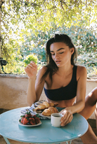 Morning shade flickers through vines, espresso in hand, you slip into a deep-navy set that feels quiet and assured. The one-shoulder neckline skims the collarbone and stays put as you swim, while a wide underband hugs with easy support. The high-waist bottom smooths and lengthens the leg, offering clean modern coverage. A textured stretch knit catches the light like ripples on the bay, made for market strolls and late dips along the French Riviera.