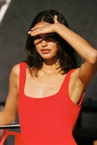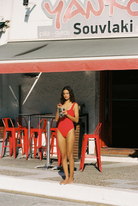 Late-afternoon light spills over Milos and the water turns wine-bright. Ruby keeps pace with the glow: a clean scoop neckline, slim straps, and a softly crinkled stretch that smooths without squeezing. High-cut legs lengthen, full lining keeps you confident, and the silhouette slips from rock-white coves to a sunset taverna with effortless ease.